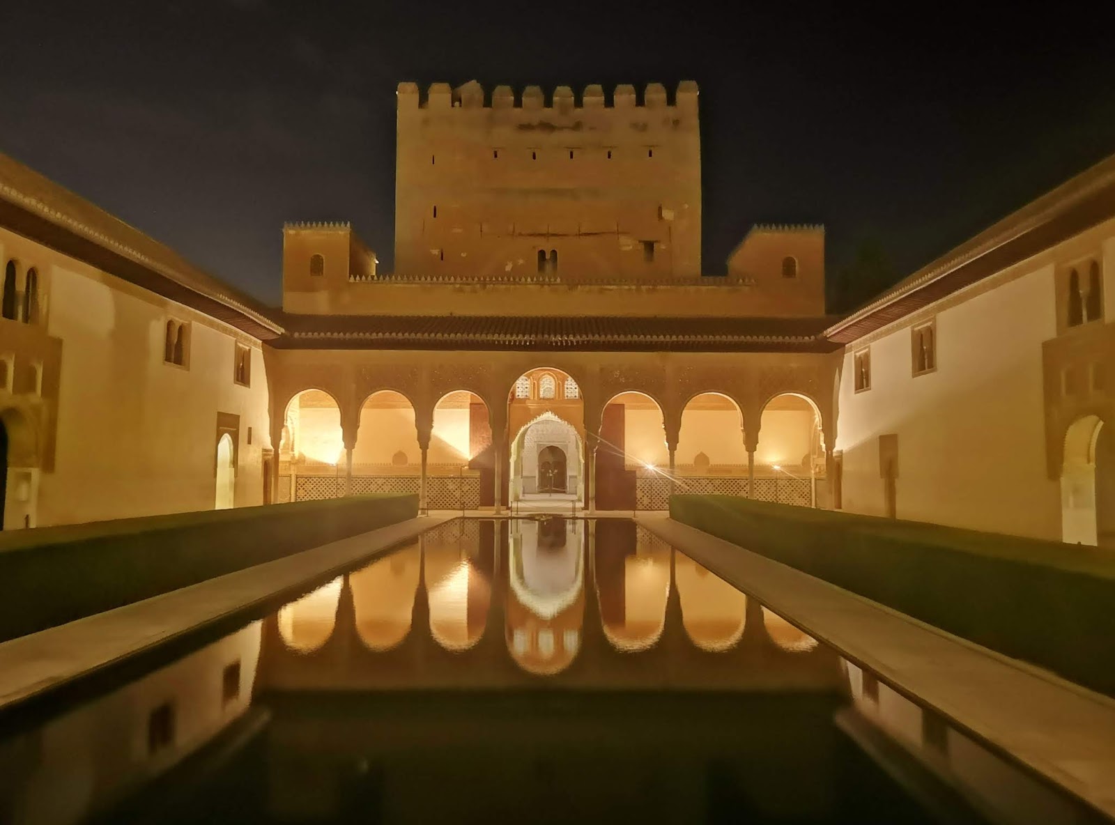 La belleza de La Alhambra se torna en misterio al caer el sol. Sus colores, olores y el sonido del agua siguen cautivando por igual, pero el hecho de recorrer los Palacios Nazaríes sin apenas visitante lo convierten en un remanso de paz y sosiego en el que todo cobrar una dimensión distinta.